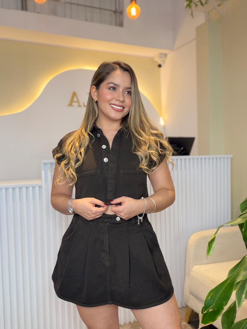 El conjunto Sarah es elegante, versátil y muy fácil de combinar. Incluye chaleco y falda, dos piezas que puedes usar juntas para un look moderno y femenino, o por separado para crear diferentes outfits. En las fotos lo combinamos con nuestro cuerpo Alicia para darte ideas de estilo y mostrar lo bien que se adapta a distintas ocasiones.